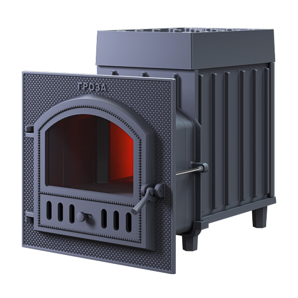 Чугунные банные печи ТМ «Гроза» — это современные печи, рассчитанные на малые и средние размеры парных. Печь имеет прочную сборную конструкцию, без резьбовых и сварных соединений, детали выполнены из легированного чугуна. Топка печей «Гроза» состоит из двух камер, разделенных пламегасителем. Радиаторные выступы каменки, направленные вглубь топки, увеличивают площадь контакта огня с каменкой и эффективность теплосъема. Для увеличения площади поверхности нагрева камней каменка снаружи оборудована чугунными шипами, направленными вверх. Между шипами укладываются банные камни или дополнительные чугунные заклады, такие как ядра и чугунные шишки. Сами чугунные шипы также являются частью заряда для лучшего испарения воды
