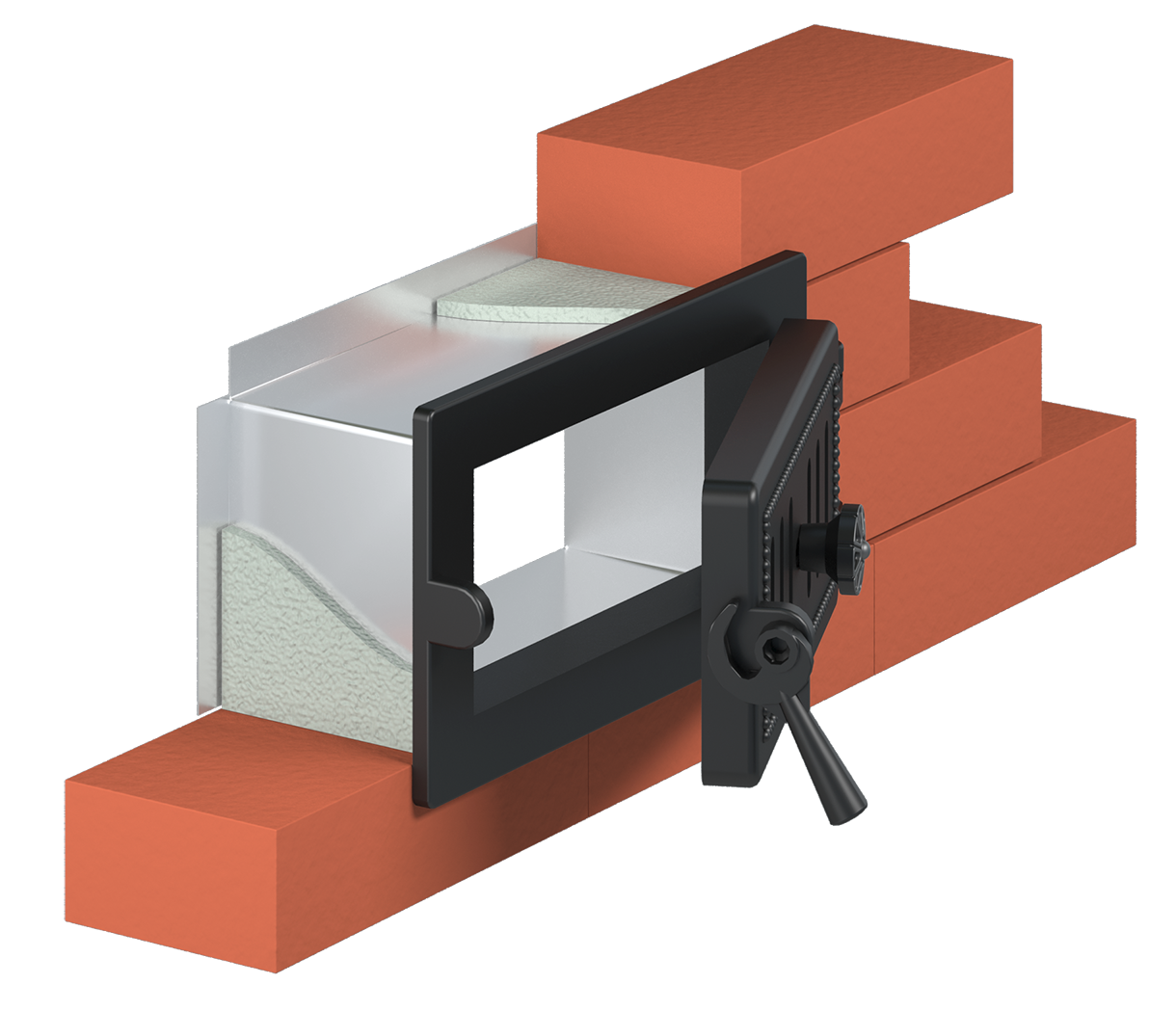 Монтажный тоннель предназначен для монтажа чугунных дверок при кладке печи из кирпича. Тоннель собирается с дверью и во время кладки печи обкладывается кирпичом. Монтажный тоннель служит для упрощения монтажа печной дверки, ее надежного крепления к печи, а также защищает кирпичную кладку от разрушения.