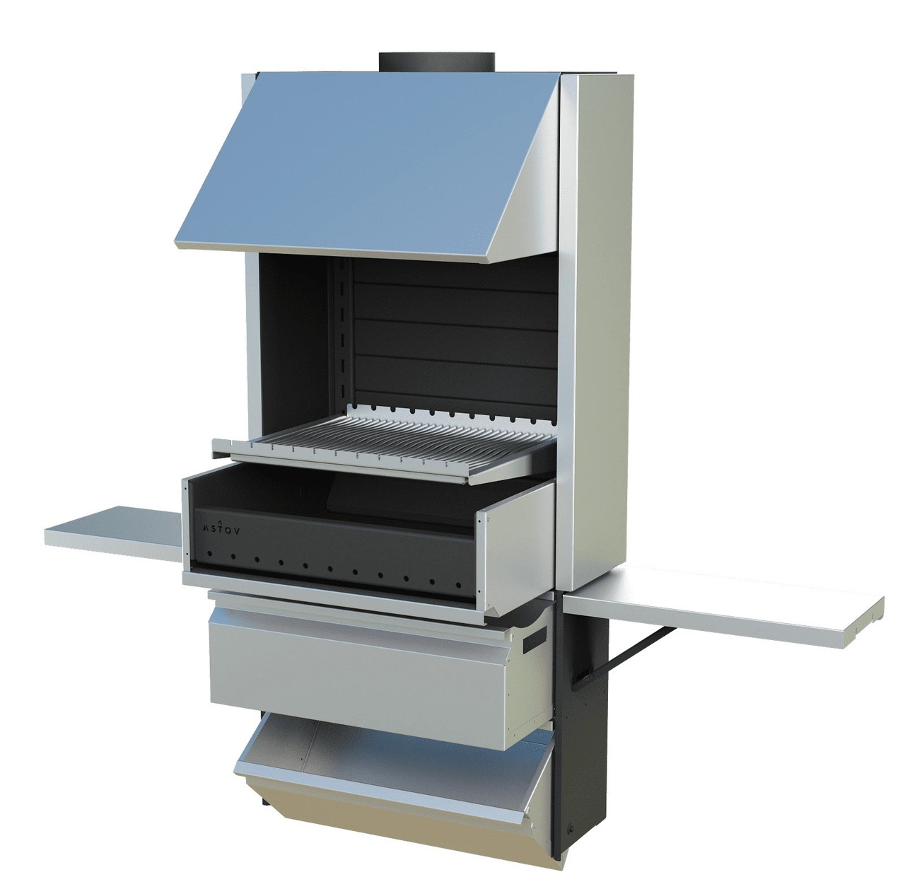 Мангал гриля усилен широкими стальными панелями (ШСП), которые применяются в качестве футеровки в каминных топках Астов, что позволяет его использовать как уличный очаг и наслаждаться красотой огня.