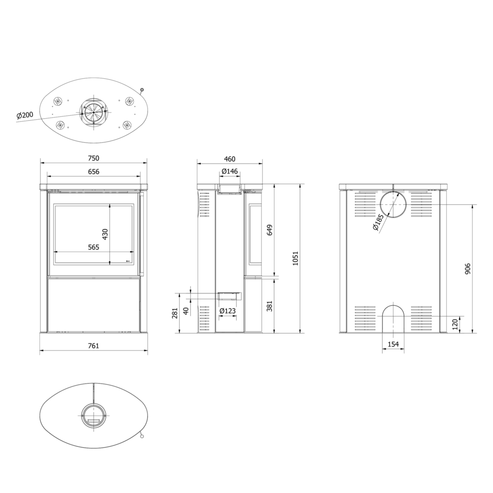 - легкая установка печи благодаря отверстию Ø200 мм в основании,