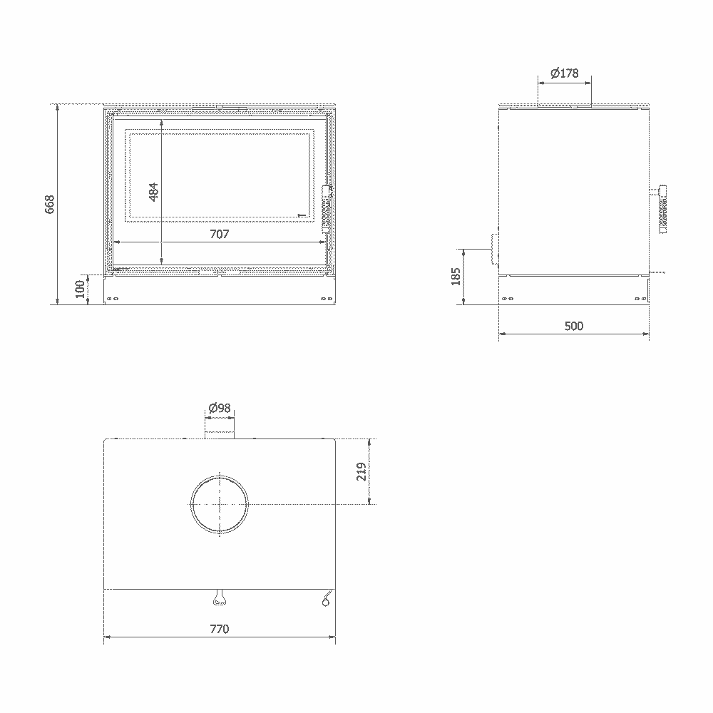 - воздухозаборник обеспечивается с помощью внешнего патрубка диаметром fi 100, расположенного в задней пластине.